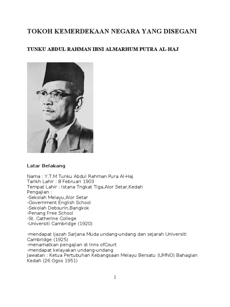 Tokoh Tokoh Kemerdekaan Di Malaysia Tunku Abdul Rahman